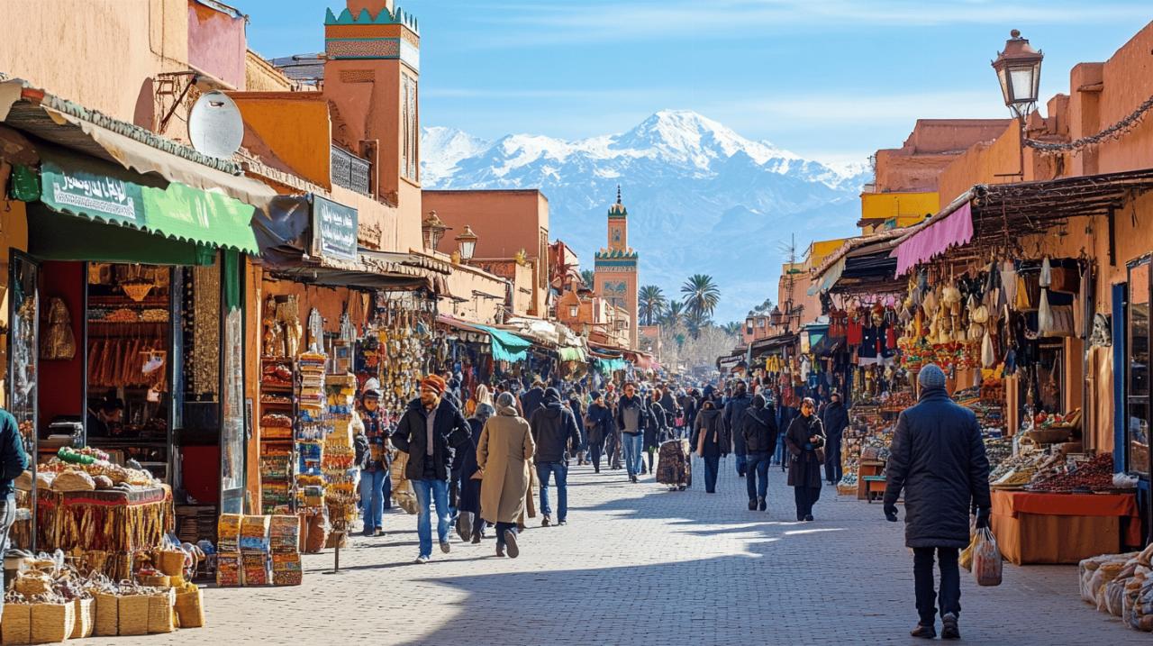 Der Dezember in Marrakesch zeichnet sich durch sein angenehmes Klima aus. Die Hitze des Sommers ist längst vergangen, und Besucher können die Stadt ohne die sonst übliche Schwüle genießen. Die Sonne scheint häufig vom klaren Himmel, doch gelegentliche Regenschauer sind nicht ausgeschlossen. Diese kurzen Niederschläge sorgen für die frische, klare Luft, die einen besonders guten Blick auf das majestätische Atlasgebirge am Horizont ermöglicht. Der Kontrast zwischen der ockerroten Stadt und den schneebedeckten Gipfeln des Atlas in der Ferne schafft eine magische Atmosphäre, die nur in den Wintermonaten erlebbar ist.